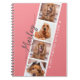 Keep all your notes with this unique and cute personalised rose spiral notebook. Be the one to pick the perfect birthday or christmas present for a dog mum or dog lover. This notebook cover design features four dog personalised pictures with a photo booth style collage, dog name in a black handwritten style typography and the quote: "life is better with a dog" with little white paw prints on both sides, on top of a simple rose background. Make sure to check the spelling of the dog's name. For better results, use photographs with a square shape or horizontal orientation.