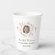 Personalised custom paper cups add a special touch to party table decor. A pretty pink rose floral wreath with two pink crosses on either side frame your daughter's photo. Perfect for a Christian or Catholic ceremony. Three lines of text below the wreath let you add your custom message. I chose First Holy Communion, the girl's name and date. The traditional and classic font combination has a timeless elegance. This item is part of the First Communion Pink Rose and Peony Collection. It contains professional templates you can use to create a unique invitation suite, welcome signs and party supplies. Planning your celebration just became a lot easier.