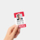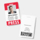 Personalise these vertical press pass badges with an employee photo and name, along with three custom text fields for media outlet name, title or role, and ID number or valid dates, along with the media outlet company logo. PRESS appears along the bottom in bold white lettering for easy identification. Customise with a barcode on the back if needed, along with return information or other details.