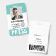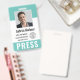 Personalise these vertical press pass badges with an employee photo and name, along with three custom text fields for media outlet name, title or role, and ID number or valid dates, along with the media outlet company logo. PRESS appears along the bottom in bold white lettering for easy identification. Customise with a barcode on the back if needed, along with return information or other details.