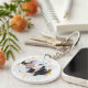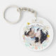 Photo Keychain with your names as a couple. Perfect for the honeymoon get away car. Daisies in a floral garland folk art wreath surrounding your photo as a newly married couple with a vintage modern banner for your names.