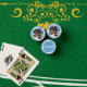 Personalised poker game chips with a custom photo and your own text (family name, established year, etc). This design in light blue includes the number 1000 but it can be edited with any value amount.