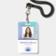 Personalised Photo, with logo, and bar code, teal blue ID company badge. Teal blue and purple abstract watercolor photo ID badge custom template. Modern and trendy business template that you can customise with the person's name, title, photo, your logo, bar code and any other information you would like on the id badge. Click on personalise above to make the necessary changes for each badge.