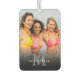 Modern chic car air freshener featuring a full printed photo for you to change to your own, a black overlay at the bottom, your initial and name.