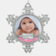 My first Christmas Personalised photo template Snowflake ornaments. Add your own photo and custom text. Bubblegum pink and white snowflakes.