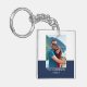 Create your own photo keychain! This stylish template is personalised with two favourite photographs, your name and a custom phrase. A perfect keepsake gift for family and friends — ideal for birthdays, anniversaries, or any special occasion. Printed colours: dark navy blue and white.