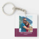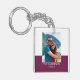 Create your own photo keychain! This stylish template is personalised with two favourite photographs, your name and a custom phrase. A perfect keepsake gift for family and friends — ideal for birthdays, anniversaries, or any special occasion. Printed colours: pink-purple plum and white.
