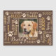 Brown Personalised gift of or for your dog. Customisable with your dog or cat photo image with your dog or cat's name. When you change the name Buddy to your own pet's name it will change all the typographical names at the same time. Word cloud art typography. Different font type and styles in brown and beige paw prints that looks great with a rustic barn style home. Trendy and modern design.