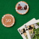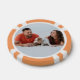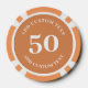 Personalised poker game chips with a custom photo and your own text (family name, established year, etc). This design in orange includes the number 50 but it can be edited with any value amount.