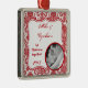 Personalised Photo Ornament Red White Damask Lace