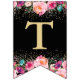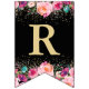 Personalised Photo Pink Floral Black Gold Birthday Bunting Flags
