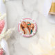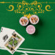 Personalised poker game chips with a custom photo and your own text (family name, established year, etc). This design in pink includes the number 250 but it can be edited with any value amount.