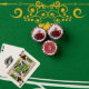 Personalised poker game chips with a custom photo and your own text (family name, established year, etc). This design in red includes the number 5 but it can be edited with any amount.