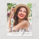 a script overlay photo card design with a custom photo and black script text. Feel free to personalise the image and thank you message at the back.