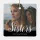 A sisters photo christmas tree decoration can be changed to any relative. Featuring your favourite photograph, the text 'Sisters' in a script font, and their names over a black background.