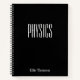 A cute, trendy notebook to take to physics class or for homework with a simple, minimalist cover in classic black and space for the school subject and your name to be personalised.