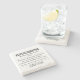 The coasters are gorgeous, a quality feel and heavy weight. They look like a precious archeological find. A rustic stone juxtaposed with a modern floral black and white print. I like the way the print goes slightly imperfect on the cut stone edges giving them a kind-of natural beauty.