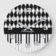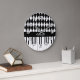 Contemporary design in classic black and white , featuring a bottom row of piano keys with black and white diamonds above. The design is broken up with a black name band where the name or message can be changed to create a unique music themed gift
