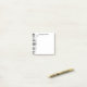 Black and white piano keyboard and a hand-drawn music note with customisable name at the top of post-it-notes.