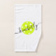 Personalised pickleball towel with a simple lime green-yellow pickleball graphic and custom name or text in a feminine girly and modern pretty script font monogram. Any girls or womens pickleball player or team would appreciate the elegant look on this modern and minimal useful sport themed gift.