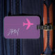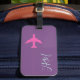 personalised pink aeroplane on purple monogrammed luggage tag