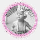 Pink and Black Its a Girl My First Birthday Sticker. Add your baby's picture in the customise area.