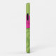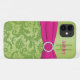 Personalised modern hot pink and lime green swirly floral damask Case-Mate iPhone 11 Case with PRINTED ON ribbon and jewelled brooch.