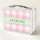Personalised Pink and Mint Gingham Metal Lunchbox
