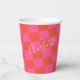 Personalised Pink and Orange Chequerboard Pattern Paper Cups