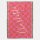 Personalised Pink and Orange Chequerboard Pattern Throw Blanket