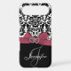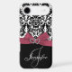 This monogrammed black and white fancy damask Samsung Galaxy Touch Case-Mate Case has a photo of this design embedded into the hard plastic cover. The design is made up of a black and white damask pattern, a printed pink bow and ribbon, two hearts with diamonds and a black bottom portion where you can add your name and monogram initial in gorgeous script fonts. This Samsung Galaxy case cover is the perfect way to accessorise your phone. Be stylish and girly all at the same time. Design by Elke Clarke©2012. Graphics licensed for use.