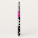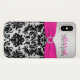 Personalised modern hot pink, black, and silver damask Case-Mate Barely There™ iPhone X Case with PRINTED ON ribbon and jewel brooch.