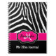 This monogrammed black and white zebra print stripes pattern note book with hot pink accents has template boxes for you to add your name, monogram, and other text. If you need help customising this item, please email niteowlstudio@gmail.com for assistance.
