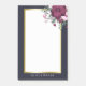 Pretty personalised post-it notes in dark blue with a pretty rose bouquet and faux gold details.