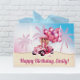 Celebrate in style with this personalised pink convertible beach party gift bag. Decorated with a fashionable doll, a pink convertible, and palm trees in a pink and blue colour scheme these napkins are sure to make any girl's birthday extra special.