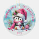 Personalised Pink Cute Penguin Girl 1st Christmas Ceramic Ornament