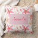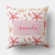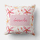 Personalised Pink Floral Throw Pillow - Are you shopping for a cute floral throw pillow? This pillow is set on a white background with different pink flowers. It also has a pink nameplate which can be personalised with whatever name you want - first name, proper name like MOM, or message.