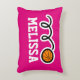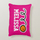 Personalised girls pillow with cute basketball ball design. Sports theme home decor with name or monogram of child. Cute print with girly colours for baby nursery, childrens bedroom or play room with sofa / couch. Suitable for boys and girls. Customisable background colour ie blue or neon pink. Sporty 1st Birthday gift idea for son, grandson, grandchild, granddaughter, daughter, nephew, etc. Also cool for coach, player and fan. Create your own for team mates or club house decorations. Whymisical illustration.