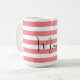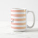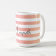 This modern personalised mug features a striped pattern in a dusky pink and peach gradient with a customisable name in black handwriting.
