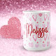 Spread the love with this personalised ceramic mug adorned in delicate pink hearts. Featuring your name in bold red script, this 11-ounce or 15-ounce mug is the perfect gift for Valentine's Day, a birthday, or just because.