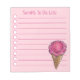 List-style note pad design features an original marker illustration of a delicious scoop of strawberry pink ice cream in a waffle cone. Just personalise with your information.