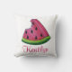 Decorative throw pillow features an original marker illustration of a slice of juicy pink watermelon. Simply personalise with your name for a unique look!