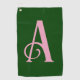 Personalised Pink Monogram Initial on Dark Green Golf Towel