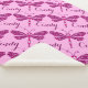 Bold stylised dragonfly named repeat patterned blanket in dark red, pink and white. Ideal for making a really personal sewing project for girls who love dragonflies or inked art. Customise with your own choice of name currently reads Amelia. The background colour can also be changed if required currently pink. Original inked art and design by Sarah Trett www.sarahtrett.com for www.mylittleeden.com