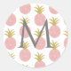 Personalised Pink Pineapple Glitter Monogram Classic Round Sticker