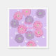 Pink and purple flowers decorate these personalised birthday napkins. Happy Birthday along with placeholder for the birthday party person's name, is printed in pink text outlined in white. The background colour behind the design and text is light lavender. There are coordinating items in this store. Thank you for shopping at CherylsArt on Zazzle.