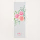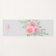 This pretty yoga mat is decorated with a watercolor bouquet of roses and foliage in shades of pink, coral and green on a soft grey background.