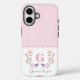 Personalised Pink Stripes Floral Monogram Case-Mate iPhone Case