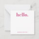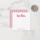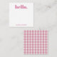 Personalised stationery enclosure notecard with a pink gingham pattern in notes of dark deep and vibrant rose pink bubble gum and white with the sentimental words "hello". Tuck it into a flower bouquet or meaningful gift. These minimal flower shop inspired enclosure cards bring a retro kitchen vibe to your most thoughtful moments.