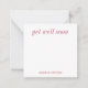 Personalised stationery enclosure notecard with a pink pin stripe pattern in notes of dark deep and vibrant rose pink bubble gum and white with the sentimental words "get well soon". Tuck it into a flower bouquet or meaningful gift. These minimal flower shop inspired enclosure cards bring a retro kitchen vibe to your most thoughtful moments.